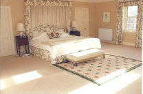 A rug adds considerable warmth to a bedroom. This is a customised design to complement the existing colour scheme of the room.